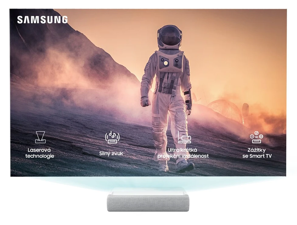 Špičkový 4K laserový projektor • Úhlopříčka 100"-130" (255cm - 330cm) • Ultrakrátká Projekční vzdálenost 11-24cm od plátna • Rozlišení 4K (3840 x 2160) • 4K UHD Processor • Technologie zobrazení DLP, Svítivost 2800 ANSI Lumen • HDR (HDR10+/HLG) • Kontrast 2 000 000:1 • Tunner DVB T2, kodek H,265 HEVC, HbbTV 2.0 • operační systém Tizen • Párování s mobilním zařízením • vestavěná Wi-Fi • Audio: 40W, Konfigurace repro 4.2CH • Vstupy / výstupy: 3x HDMI 2.0, 1x USB 2.0, 1x LAN, 1x optický výstup