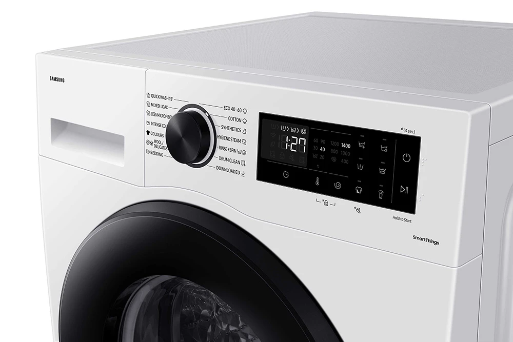 8 kg parní pračka Samsung WW80CGC04DAELE s předním plněním • energetická třída A • kapacita pračky 8 kg • spotřeba energie 47 kWh/100 cyklů • spotřeba vody na cyklus 48 l • parní program • invertorový motor • váhová automatika • přidání prádla v průběhu praní • ovládaní mobilem a dětská pojistka • Eco Bubble • 1400 ot/min při odstřeďování • rozměry 60 × 85 × 55 cm (Š×V×H)