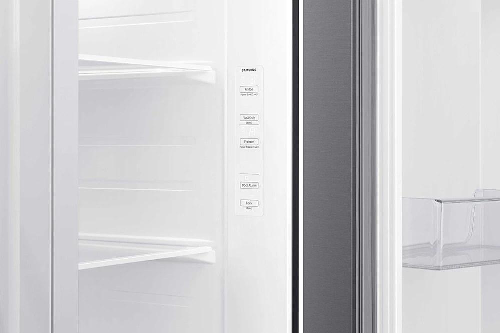 Americká chladnička • en. třída E • objem 655 l (chladnička 418 l; mrazák 237 l) • invertorový kompresor s 20 letou zárukou • vnitřní ovládací displej • výrobník ledu Twist Ice Maker • True No Frost • Mono cooling chlazení • rychlé funkce Power Cool a Power Freeze • výrobník ledu • LED osvětlení • aplikace SmartThings a SmartThings Home Care • režim AI Energy