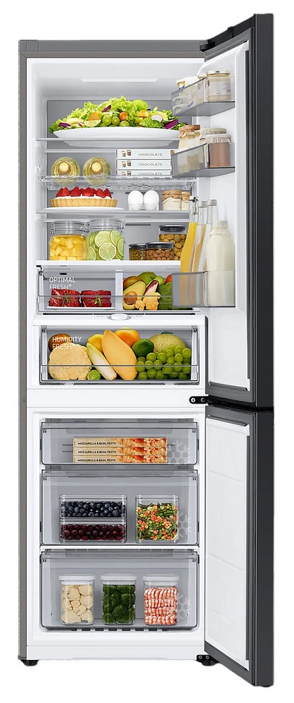 Kombinovaná lednice s mrazákem dole • en. třída D • objem 344 l (chladnička 230 l; mrazák 114 l) • možnost spojení více chladniček dohromady • přizpůsobitelný interiér • 20letá záruka na kompresor •True No Frost • SpaceMax • chlazení All Around Cooling • rychlé funkce Power Cool a Power Freeze •unikátní zásuvky Optimal Fresh+ a Humidity Fresh+ • kovová deska Metal Cooling • zadní design Clean Back • LED osvětlení • klim. třída: SN, T •hlučnost: 35 dB • rozměry: 185,3 × 59,5 × 65,8 cm (v × š × h)