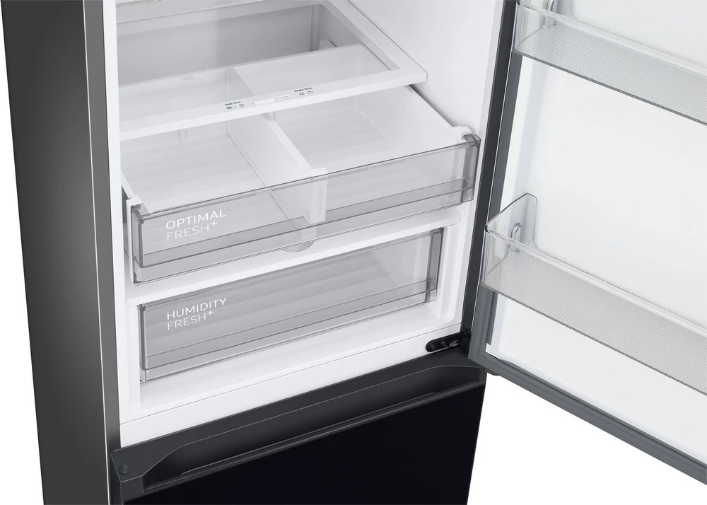 Kombinovaná lednice s mrazákem dole • en. třída D • objem 390 l (chladnička 276 l; mrazák 114 l) • Bespoke design • přizpůsobitelný interiér • 20letá záruka na kompresor • True No Frost • SpaceMax • chlazení All Around Cooling • rychlé funkce Power Cool a Power Freeze • unikátní zásuvky Optimal Fresh+ a Humidity Fresh+ • kovová deska Metal Cooling • zadní design Clean Back • LED osvětlení • Wi-Fi • klimatická třída: SN, N, ST, T • hlučnost: 35 dB • rozměry: 203 × 59,5 × 65,8 cm (v × š × h)