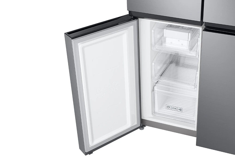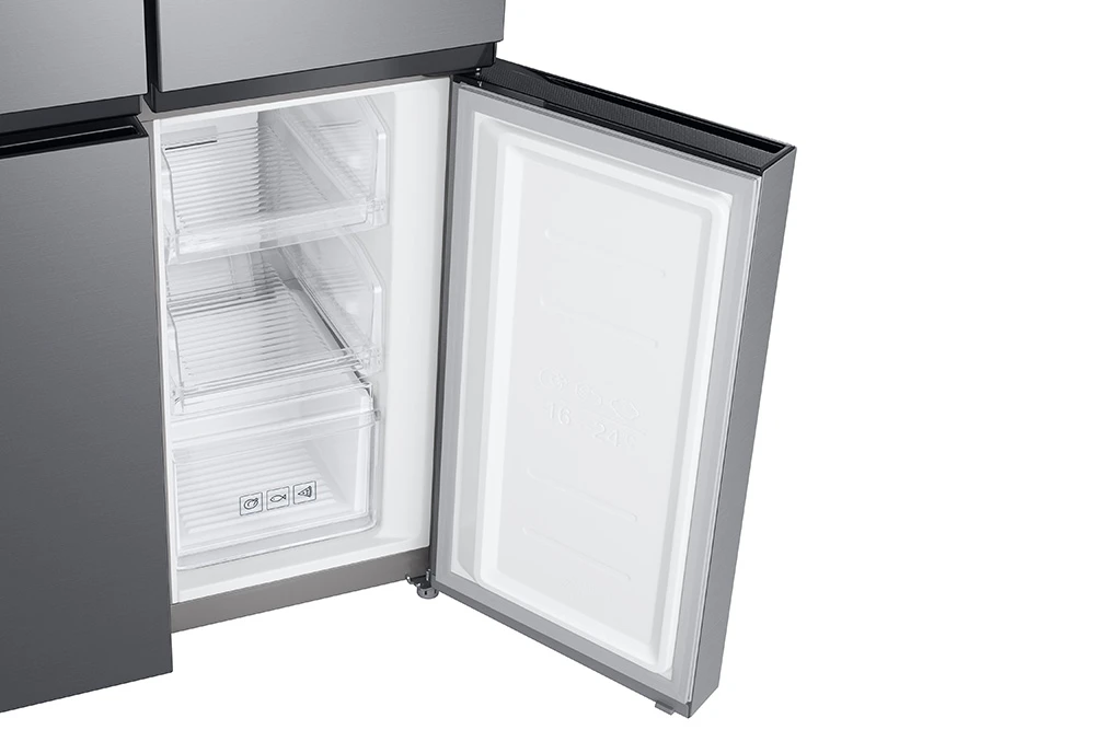 Americká chladnička • en. třída E • objem 488 l (chladnička 329 l; mrazák 159 l) • True No Frost • SpaceMax • Twin cooling chlazení • rychlé funkce Power Cool a Power Freeze • výrobník ledu a dispenzor vody • LED osvětlení