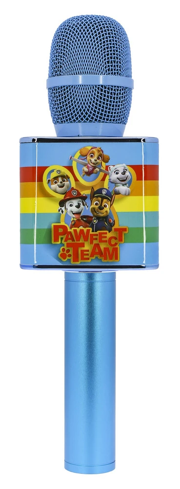 Bezdrátový karaoke mikrofon pro děti • veselý a barvitý design s motivy oblíbených postav z pohádky Tlapková patrola • čistý a hlasitý zvuk ve vysoké kvalitě • funkce reproduktoru a diktafonu • přehledná ovládací tlačítka • kompatibilní s Android i iOS zařízeními • snadné propojení s televizemi, tablety, počítači ad. • integrovaná velkokapacitní baterie – až 5h výdrž při nepřetržitém používání • dobíjení skrze USB kabel (součástí balení)