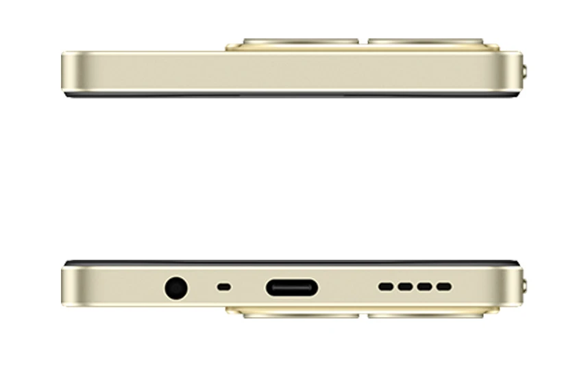 Mobilní telefon se 6,74“ HD+ IPS displejem o rozlišení 1600 × 720 px (20:9, 90Hz, až 560 nitů) • 8jádr. proc. Unisoc T612 • 6GB RAM • 128GB vnitřní uložiště (microSD až 2 TB) • zadní hlavní fotoaparát 50MPx (F/1,8) + pomocný objektiv • přední 8MPx selfie kamera (F/2,0) • boční čtečka otisků • Wi-Fi • Bluetooth 5.0 • NFC • GPS • Glonass • Galileo • USB-C • 3.5mm jack • Dual SIM • 5000mAh baterie s 45W rychlonabíjením • Android 14 • Barva: zlatá