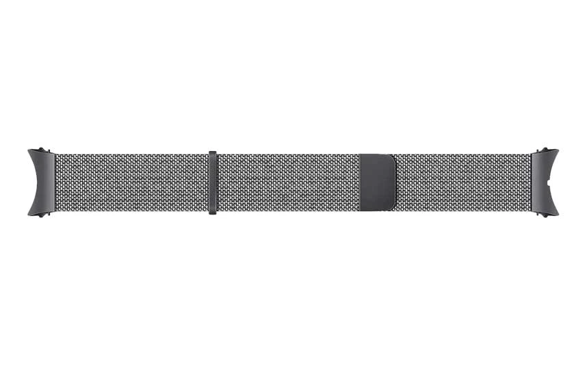 Řemínek pro Samsung Galaxy Watch, materiál prémiová nerezová ocel, s vlastním typem zapojení, pro obvod zápěstí od 16 do 21,6 cm, černá barva, design milánský tah