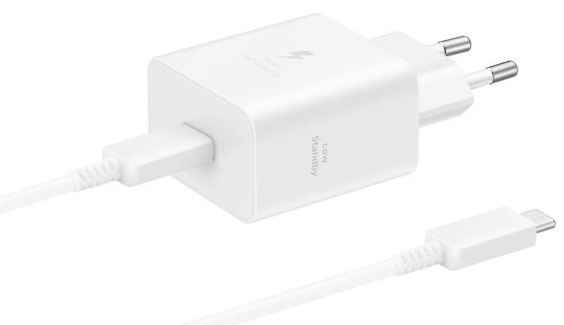 Originální Samsung cestovní rychlonabíječka do sítě s maximálním výkonem 45W • USB-C výstup • GaN technologie • Super Fast Charging 2.0, PD 3.0 PPS • Ochrana proti přebití, zkratu, přehřátí a přepólování • USB-C kabel dlouhý 1,8m v balení • Barva: bílá