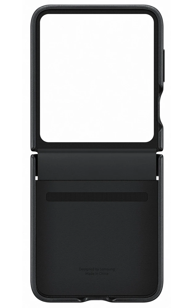 Zadní kryt z ekokůže pro Galaxy Z Flip5 • dvoudílné pouzdro potažené rostlinnou kůží • elegantní skrytí závěsu • tenký design pro pohodlný pocit • vnitřek z měkkého mikrovlákna • snadné připevnění a bezpečné držení díky technologii mikropřísavek na pouzdru • ochrana rámu a zadní části před poškrábáním a nárazy • ekologické – vyrobeno částečně z recyklovaných materiálů • barva: černá