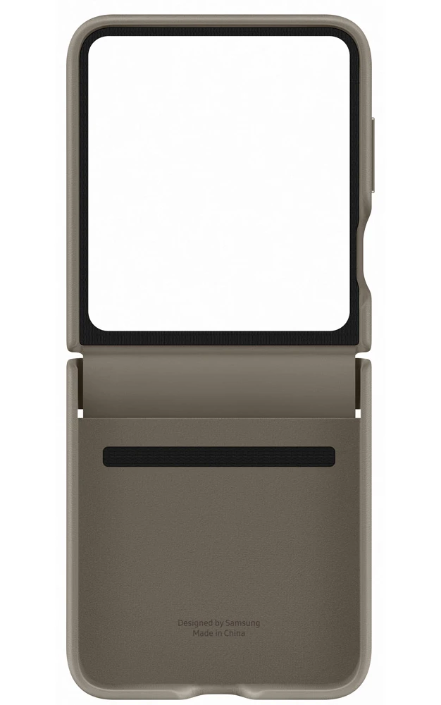 Zadní kryt z ekokůže pro Galaxy Z Flip5 • dvoudílné pouzdro potažené rostlinnou kůží • elegantní skrytí závěsu • tenký design pro pohodlný pocit • vnitřek z měkkého mikrovlákna • snadné připevnění a bezpečné držení díky technologii mikropřísavek na pouzdru • ochrana rámu a zadní části před poškrábáním a nárazy • ekologické – vyrobeno částečně z recyklovaných materiálů • barva: šedohnědá