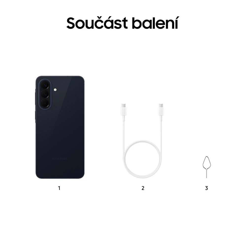 Mobilní telefon se 6,7" FHD+ SuperAMOLED displejem (2 340 × 1 080 px, 120Hz, 1200 nitů) • 8jádrový procesor Exynos 1680 • 8GB RAM • 128GB vnitřní úložiště • trojice zadních fotoaparátů – 50MPx (f/1,8) + 12MPx (f/2,2) + 5MPx (f/2,4) • OIS • přední 12MPx selfie kamera (f/2,2) • stereo reproduktory • optická čt. otisků • 5G • Wi-Fi 6E • Bluetooth 6.0 • NFC • GPS • USB-C • Dual SIM/eSIM • IP68 • 5 000mAh baterie s 45W rychlonabíjením • Android 16 • One UI 8.5 • barva: tmavě modrá