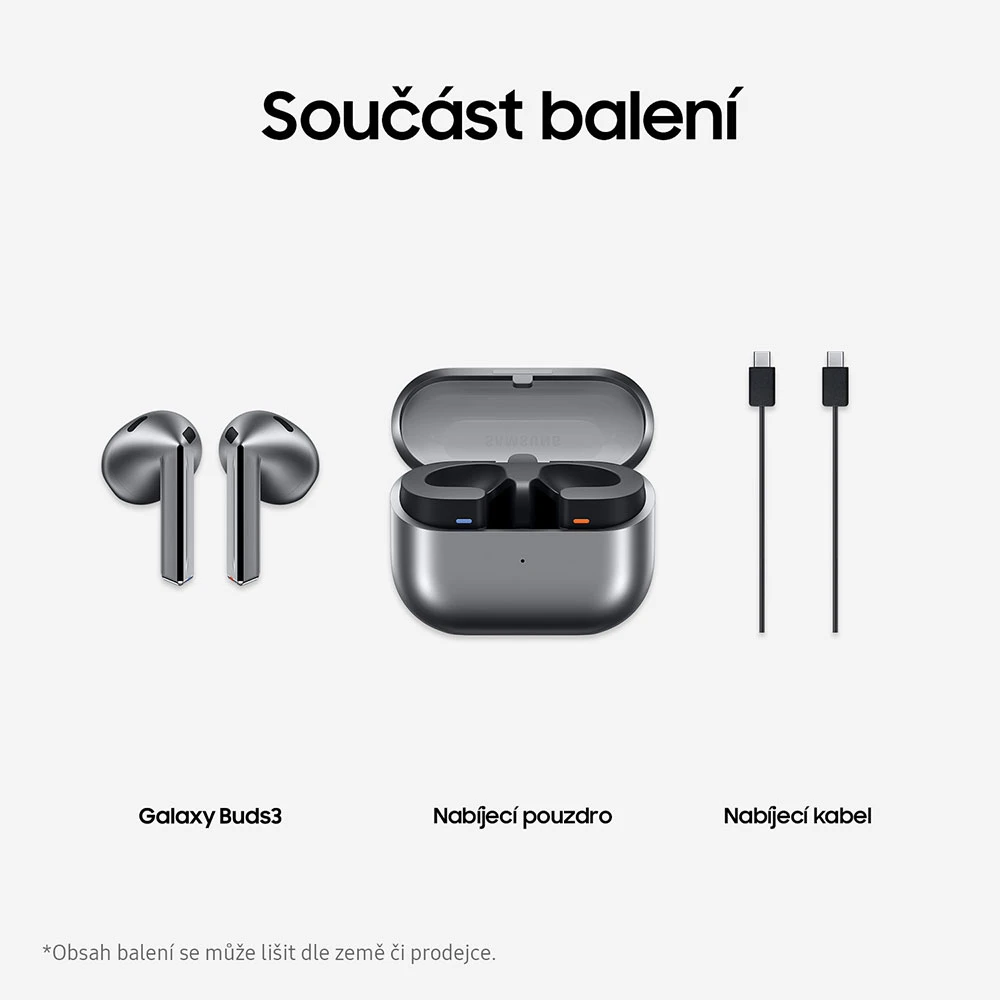 Bezdrátová TWS pecková sluchátka • 11mm reproduktor • 24bit kvalita zvuku • dvojice citlivých mikrofonů • adaptivní ekvalizér • pokročilé funkce Galaxy AI • funkce adaptivního potlačení okolního hluku • režim Ambient • obousměrný překlad v reálném čase skrze Galaxy AI a spárovaný Galaxy smartphone • funkce 360 audio • aplikace Samsung Health a Calm • barva: stříbrná