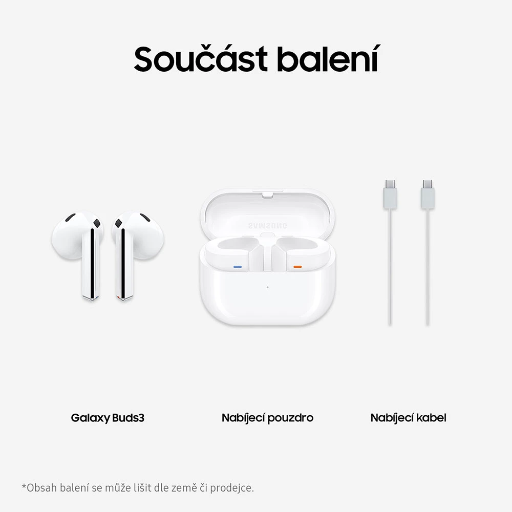 Bezdrátová TWS pecková sluchátka • 11mm reproduktor • 24bit kvalita zvuku • dvojice citlivých mikrofonů • adaptivní ekvalizér • pokročilé funkce Galaxy AI • funkce adaptivního potlačení okolního hluku • režim Ambient • obousměrný překlad v reálném čase skrze Galaxy AI a spárovaný Galaxy smartphone • funkce 360 audio • aplikace Samsung Health a Calm • barva: bílá