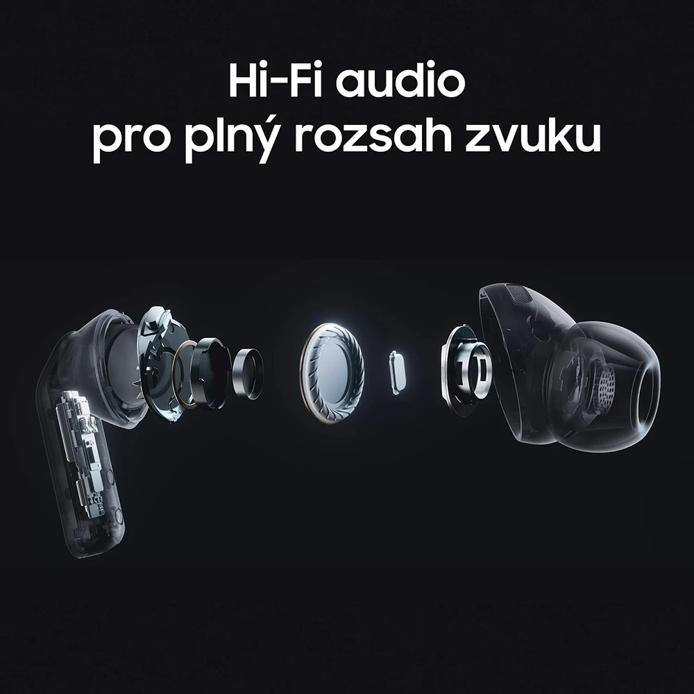 Bezdrátová TWS špuntová sluchátka • 11mm dvoupásmový + 5,4mm výškový reproduktor • 24bit kvalita zvuku • hlasový asistent • trojice mikrofonů • Kodeky: AAC, SBC, SSC, SSC-UHQ • adaptivní ekvalizér • pokročilé funkce Galaxy AI • adaptivní potlačení okolního hluku • Adaptivní regulace hluku • režim Ambient • Ovládání přitlačením, dotykem a přejetím • fce 360 audio • odolnost IP54 • BT 6.1 • Výdrž až 7h sluch. + 23h pouzdro (bez ANC) • aplikace Samsung Health • USB-C a bezdr. nabíjení • barva: bílá
