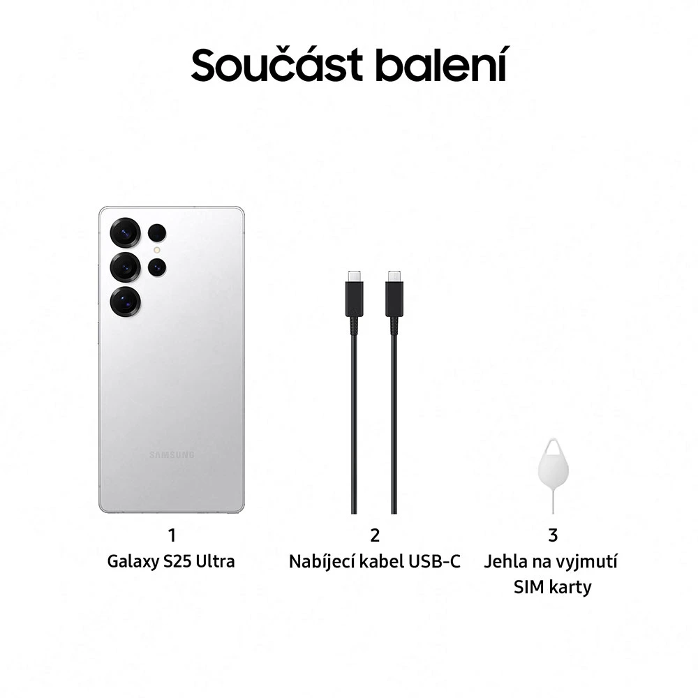 Mobilní telefon s 6,9" Quad HD+ Dynamic LTPO AMOLED 2X displejem (3120×1440 px,1-120Hz,HDR10+,až 2600 nitů) • 8jádr. pr. Snapdragon 8 Elite • 12GB RAM • 1TB úložiště • čtveřice zadních fotoap. - 200MP (f/1,7)+10MP (f/2,4)+50MP (f/1,9)+50MP (f/3,4) • OIS • přední 12MP kamera (f/2,2) • S Pen • stereo reprod. • ultrazvuk. čt. otisků • 5G • Wi-Fi 7 • Bluetooth 5.4 • NFC • GPS • USB-C 3.2 • UWB • IP68 • 5 000mAh bat. s 45W drát. a 25W bezdr. nab. • Android 15 • Sams. DeX • barva: stříbrná