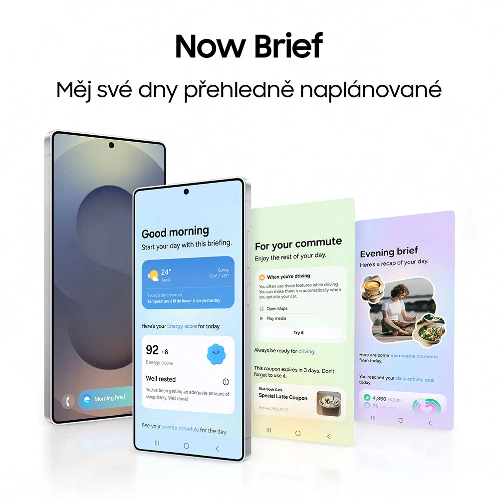 Mějte svůj den plně pod kontrolou – s novou funkcí Now Brief vám už nic neunikne. Ráno si v telefonu Samsung Galaxy S25 Ultra vždy jednoduše zkontrolujete, co vás čeká a naopak večer si prohlédnete shrnutí těch nejdůležitějších okamžiků.