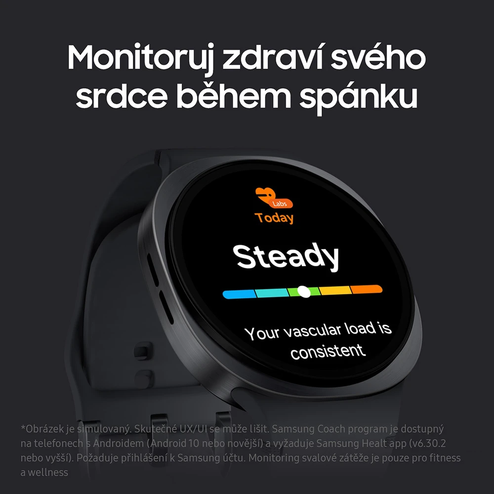 *Hodinky Galaxy Watch ti dávají dobrý přehled o mnoha zdravotních metrikách, ale v žádném případě nemají nahradit lékaře. Pokud se necítíš dobře nebo máš jakékoli pochybnosti o svém zdravotním stavu, požádej o radu odborníka. Měření jsou užitečná a zpravidla velmi přesná, ale prosíme, neměň na jejich základě v žádném případě způsob léčby, dávkování léků apod.