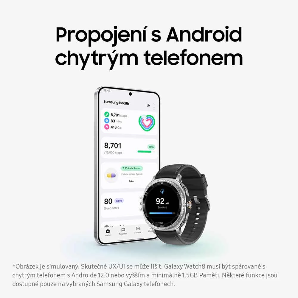 Galaxy Watch8 Classic dokonale komunikují s tvým smartphonem Galaxy. Zrcadli notifikace, vyřizuj hovory nebo ovládej hudební přehrávač a foťák na mobilu. Přes řešení Samsung SmartThings se navíc hodinky integrují do tvé chytré domácnosti. Ovládej jimi televizor, zhasínej chytrá světla nebo monitoruj své chytré spotřebiče. Kupříkladu pračka v jiném patře ti může poslat notifikaci, že je s praním hotová a máš prádlo přesunout do sušičky.