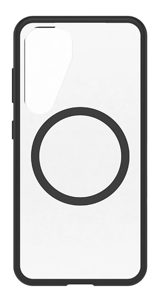 Originální průhledný kryt s magnetickým úchytem pro Galaxy S25 • Černý stylový rámeček • Vyroben z kvalitního polyuretanu • Přesné výřezy nabízí plný přístup k fotoaparátu, senzorům a dalším funkcím zařízení