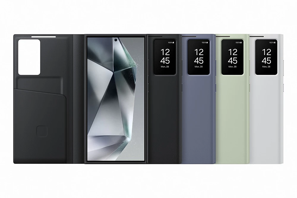 Flipové pouzdro Smart View pro Samsung Galaxy S24 Ultra • Vyrobené z recyklovaných materiálů • Praktické okénko na přední straně krytu • Štíhlý profil krytu s příjemným úchopem • Hladký povrch se speciální antimikrobiální úpravou • Barva: bílá