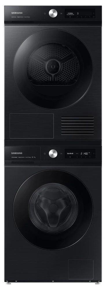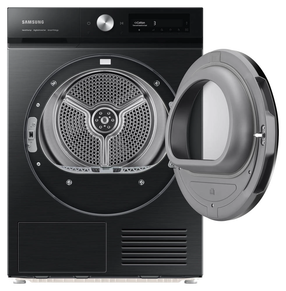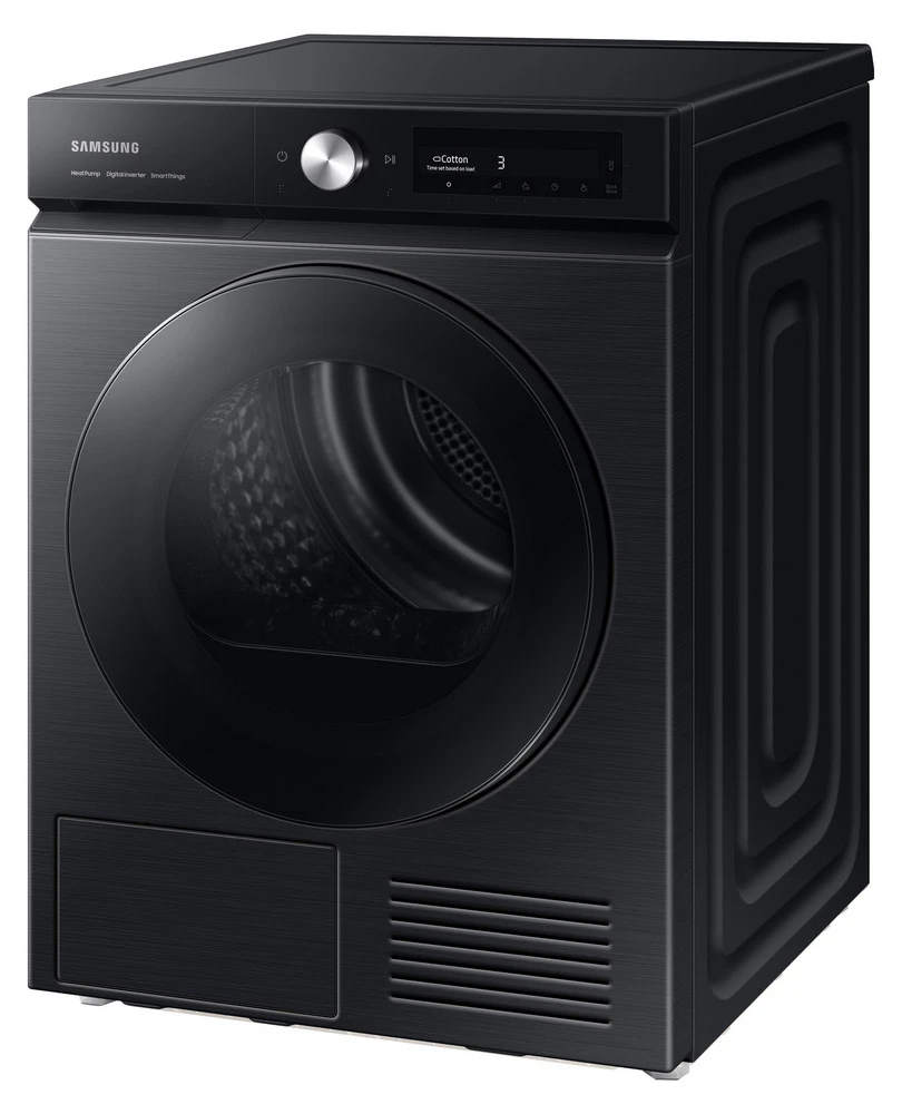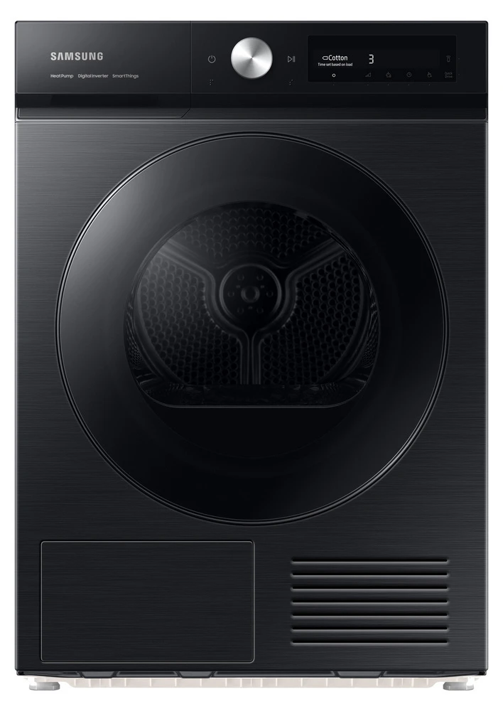 Sušička prádla s tepelným čerpadlem • kapacita: 9 kg • energetická třída A+++ • třída účinnosti sušení: B • senzorová technologie OptimalDry • filtr 2 v 1 • displej AI Control • ochrana proti pomačkání • 18 programů • Super Speed • diamantový buben • odložený start/konec • dětská pojistka • vnitřní osvětlení • reverzibilní dvířka • sušicí nástavec • napojení na odpad • hlučnost: 63 dB • WiFi • podpora SmartThings • Bespoke design • rozměry: 85 × 60 × 60 cm (v × š × h) • barva: černá