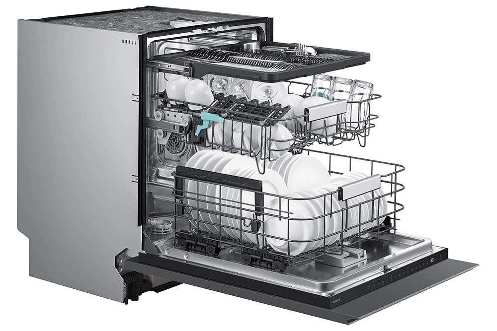 Vysoká energetická účinnost • Water Jet Clean dvojitá rotační ramena • Integrované Wi-Fi SmartThings • energetická třída A • Tichá 42dB(A) • Automatické otevírání dveří • Flexibilní prostor • Informační LED na podlahu • Aqua Stop • 14 sad nádobí