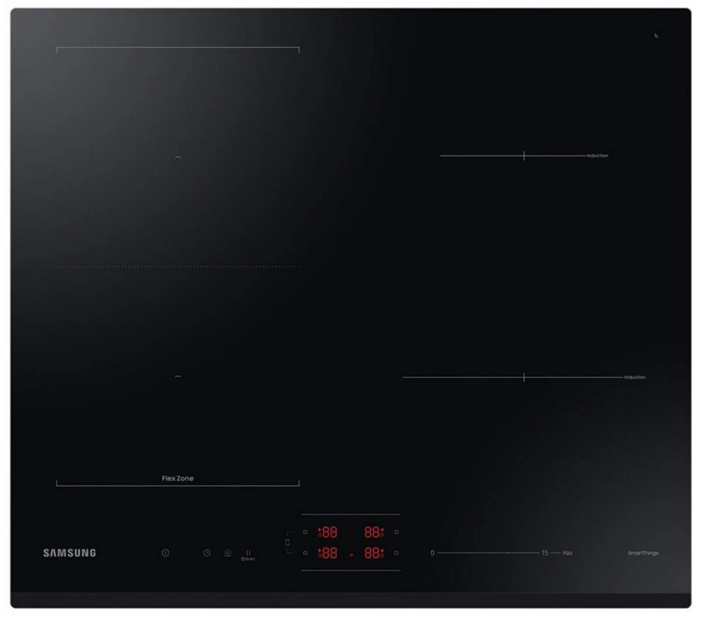 Vestavná indukční varná deska se 4 varnými zónami • Flex Zone plus pro pohodlné vaření více pokrmů najednou • intuitivní posuvné ovládání teploty • Power Boost pro maximalizaci výkonu • minutka • automatická detekce hrnců/malých nádob • indikátor zůstatkového tepla • dětská pojistka • funkce automatického vypnutí • možnost ovládání přes Wi-Fi • podpora SmartThings • automatická konektivita s digestoří (Bluetooth) • čisté rozměry: 4,8 × 59 × 52 cm (v × š × h)