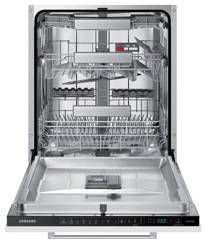 Vestavná myčka pro 14 sad nádobí • 8 programů včetně intenzivního či extra tichého • horní zásuvka s nastavitelnou výškou a skládacími přihrádkami • spodní zásuvka se sklopnými přihrádkami • přizpůsobitelná kovová zásuvka • koš na příbory • odložený start • informační světlo • funkce dezinfekce • sušení automatickým otevřením dvířek • zámek • Speed Booster • nerezový interiér • dotykové ovládání • Wi-Fi • Aqua stop • en. třída B • hlučnost: 41 dB • rozměry: 81,5 × 59,8 × 55 cm (v × š × h)