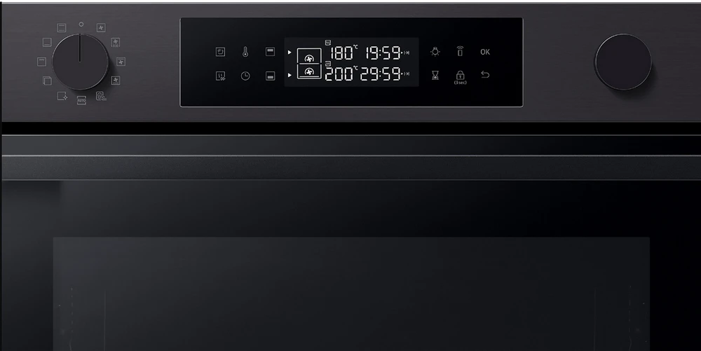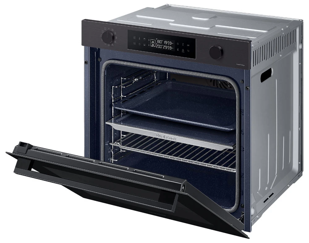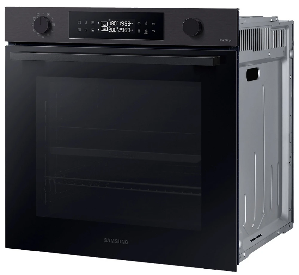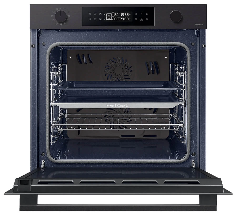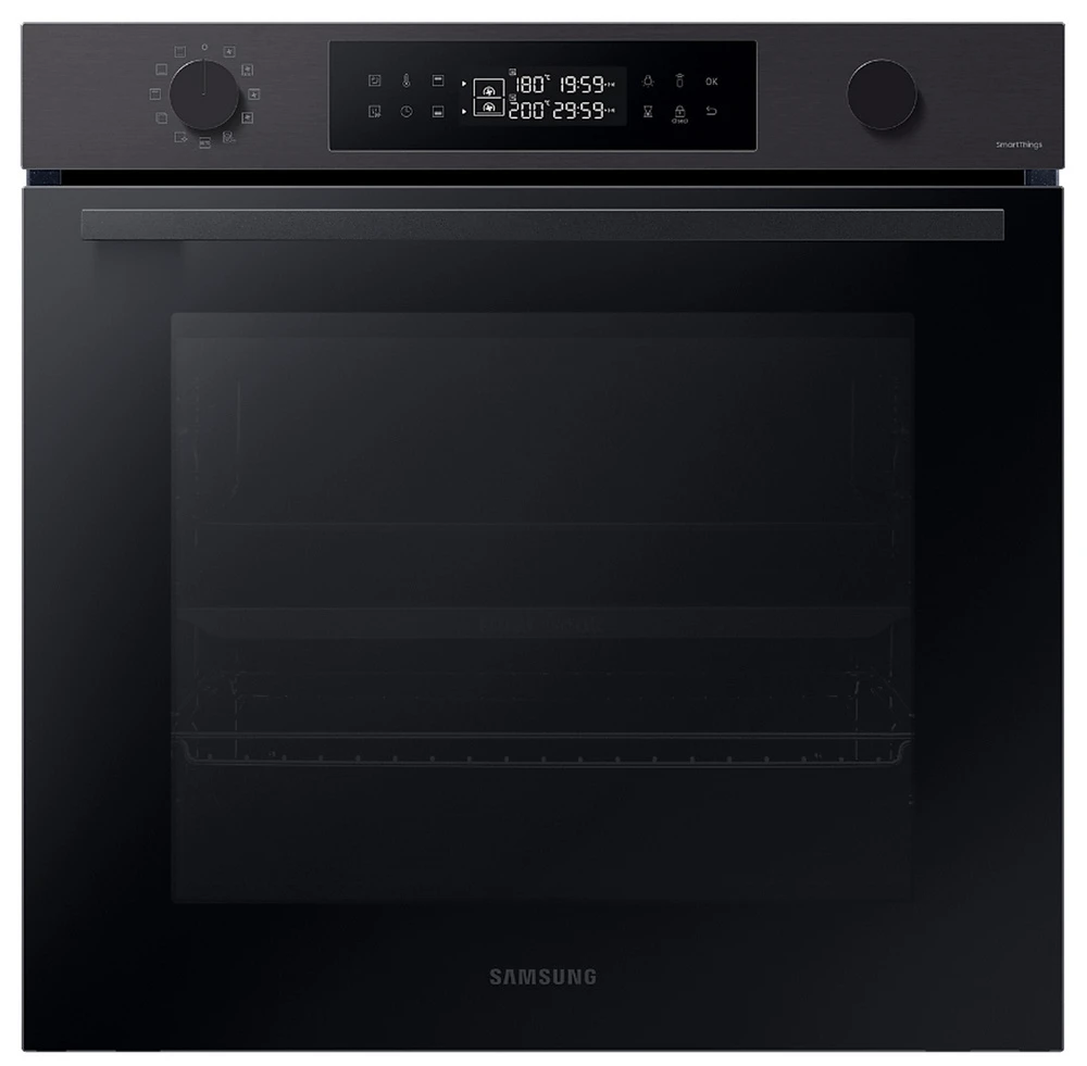 Vestavná trouba Dual Cook • en. třída A+ • kapacita 76 l • spodní & horní ohřev • gril • Natural Steam – vaření v páře • systém Air Sous Vide • SmartThings Cooking • parní & katalytické čištění • obrovské množství aut. programů • LED displej • časovač • dětská pojistka • vnitřní osvětlení • dvojité dveřní sklo • Wi-Fi • výběr jazyka • bohaté příslušenství • barva: černý nerez • rozměry: 59,6 × 59,5 × 57 cm (v × š × h)