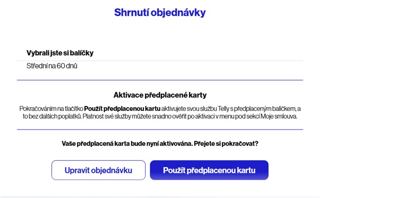7. Ve shrnutí objednávky klikněte na „Použít předplacenou kartu“